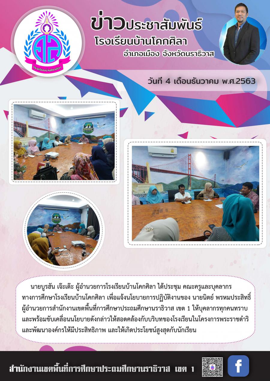 ประชุมขับเคลื่อนนโยบาย ผอ.สพป.นธ. เขต 1 ให้คณะครูและบุคลากรทางการศึกษาทราบ