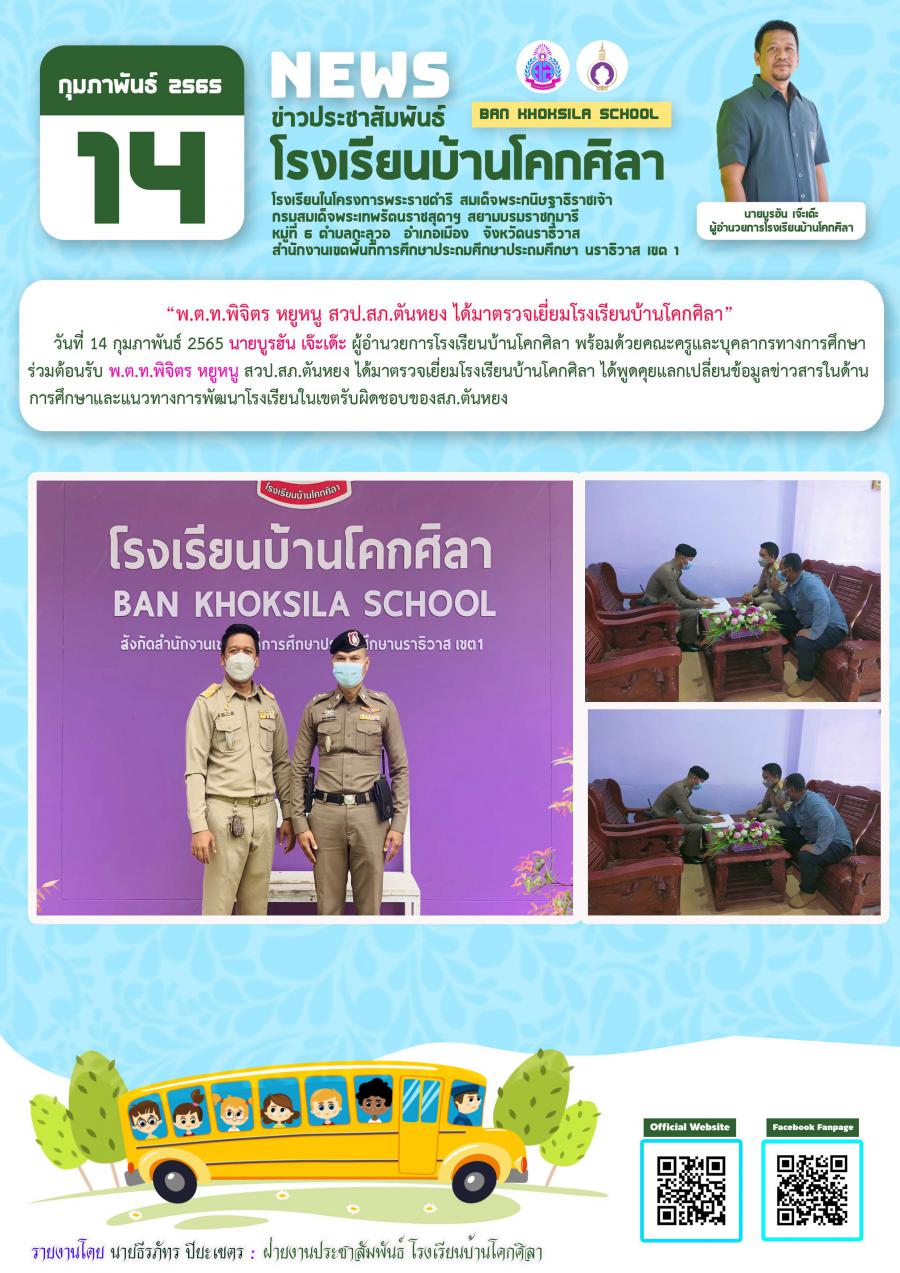 พ.ต.ท.พิจิตร หยูหนู สวป.สภ.ตันหยง ได้มาตรวจเยี่ยมโรงเรียนบ้านโคกศิลา