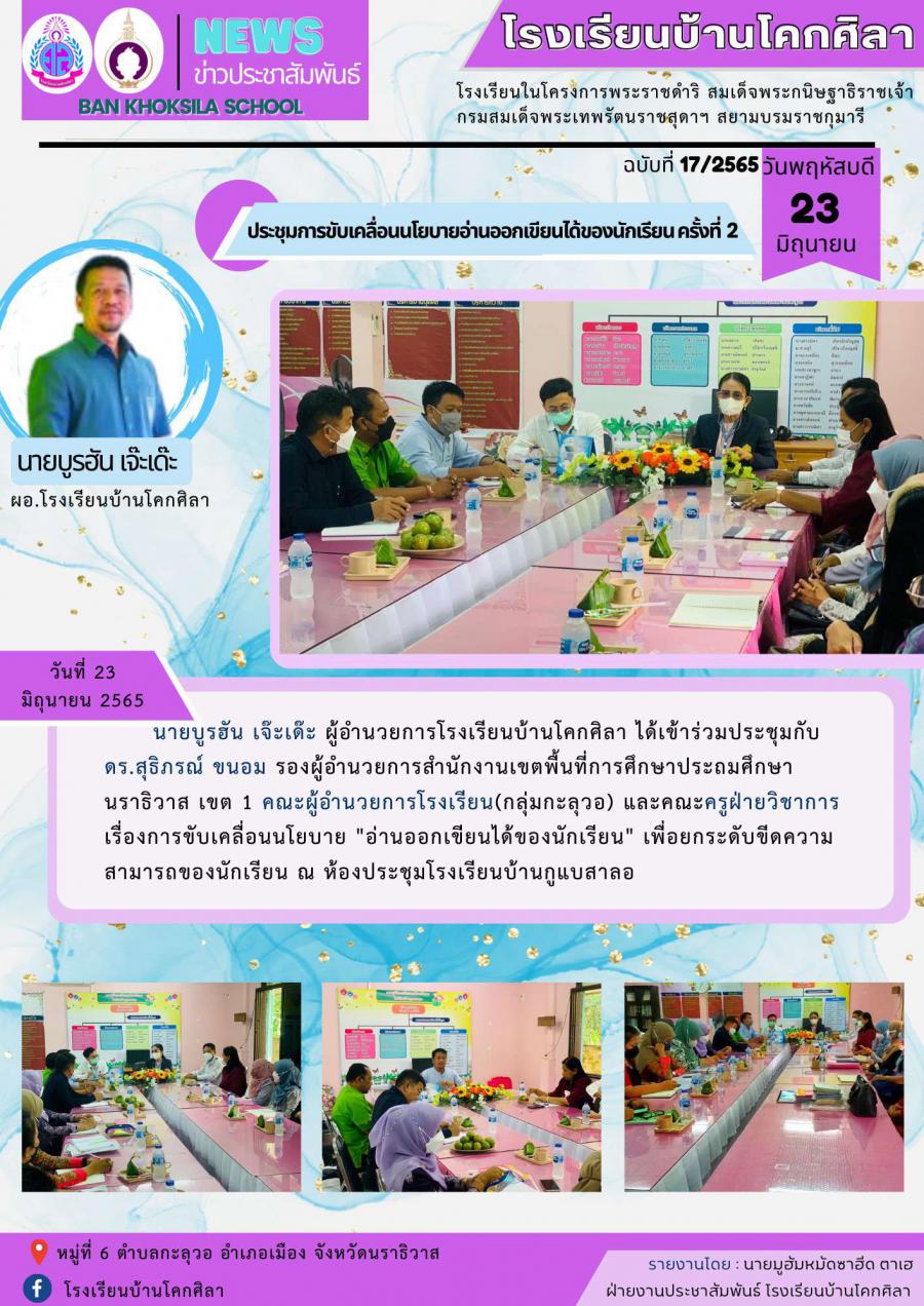 ประชุมการขับเคลื่อนนโยบายอ่านออกเขียนได้ของนักเรียน ครั้งที่ 2