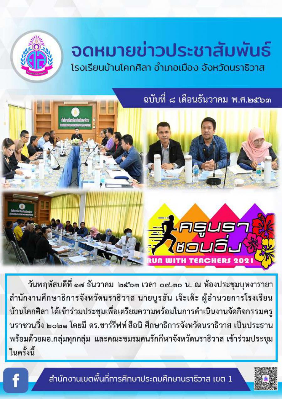 นายบูรฮัน เจ๊ะเด๊ะ ผู้อำนวยการโรงเรียนบ้านโคกศิลา ได้เข้าร่วมประชุมเพื่อเตรียมความพร้อมในการดำเนินงานจัดกิจกรรมครูนราชวนวิ่ง 2021